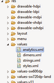 Goto res/values folder ->Create file name called analytics.xml . Then paste this code into that file.